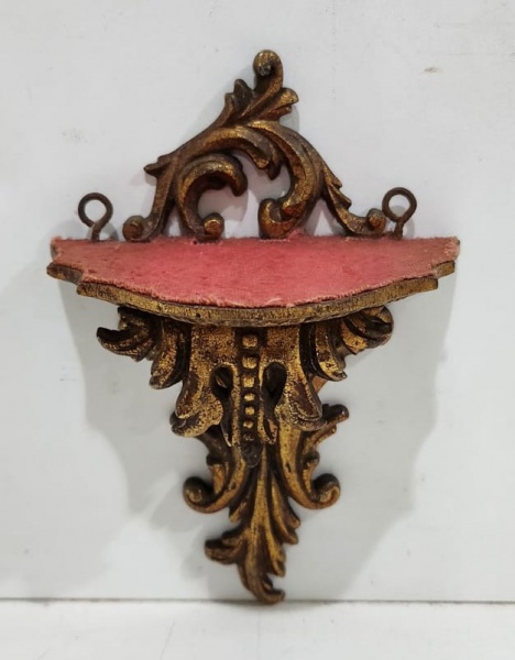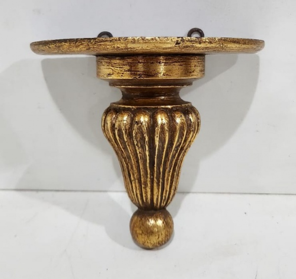 • Antiga Peanha executada em madeira nobre entalhada e pátina dourada. Medindo 13.5 x 7 x 14.5 cm