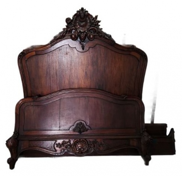 • ESPETACULAR CAMA DE CASAL EXECUTADA EM MADEIRA NOBRE NO ESTILO LUIZ XV. ACOMPANHA O ESTRADO. PERFEITO ESTADO. MEDINDO 174.5 X 161 X 228 CM E O ESTRADO MEDINDO 150 X 200 CM