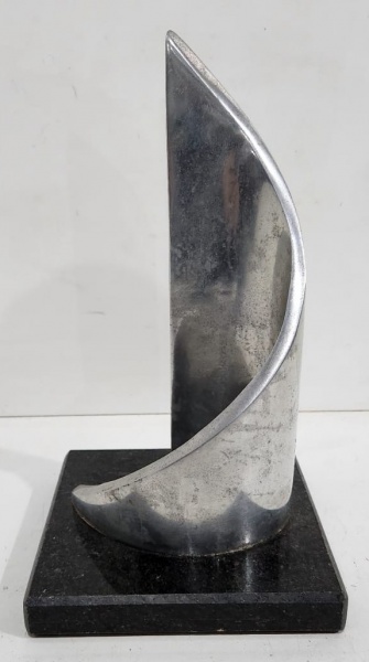 • Maravilhosa escultura abstrata confeccionada em metal, com base em granito medindo 26.5 X 15 X 15 cm