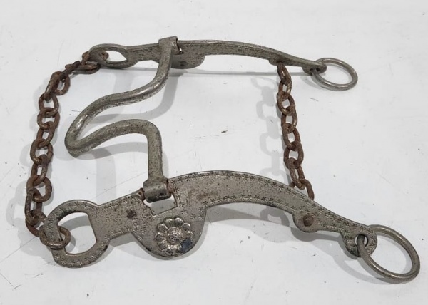 • ANTIGO FREIO DE CAVALO EXECUTADO EM METAL. MARCADO RIVAL. MEDINDO 17 X  14 CM