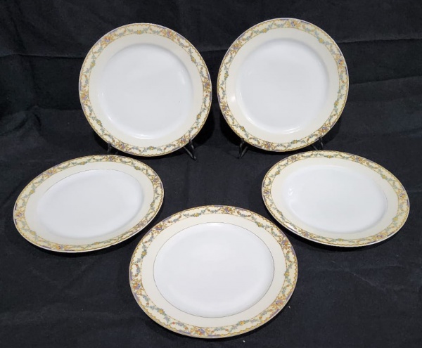 • Bohemia Porcelán Moritz Zdekauer, Karlovy Vary - Conjunto de cinco pratos rasos em porcelana tcheca ricamente decorada. Medindo 25.5 cm