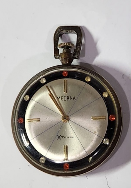 • ANTIGO RELÓGIO DE BOLSO SUIÇÕ MARCA MEDANA XTENSA. NÃO TESTADO SEU FUNCIONAMENTO E SEM GARANTIAS FUTURAS. PEÇA DE COLEÇÃO. MEDINDO 4 X 3.5 CM