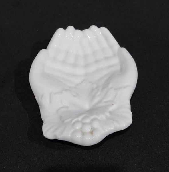 • LIMOGES - ANTIGA SABONETEIRA EM PORCELANA BRANCA NO FORNATO DE UMA MÃO. PEÇA MARCADA NA BASE. MEDINDO 13 X 18 CM