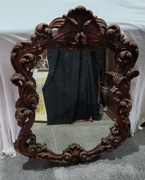 • GRANDIOSO ESPELHO COM MOLDURA RICAMENTE ENTALHADA EM MADEIRA NOBRE. MEDINDO 117 X 84 CM