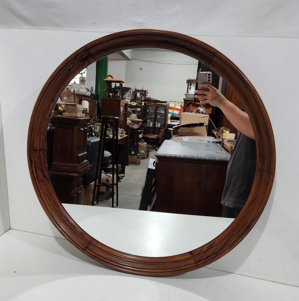 • ANTIGO ESPELHO DA DÉCADA DE 60 COM MOLDURA EXECUTADA EM JACARANDÁ MACIÇO. MEDINDO 66.5 CM