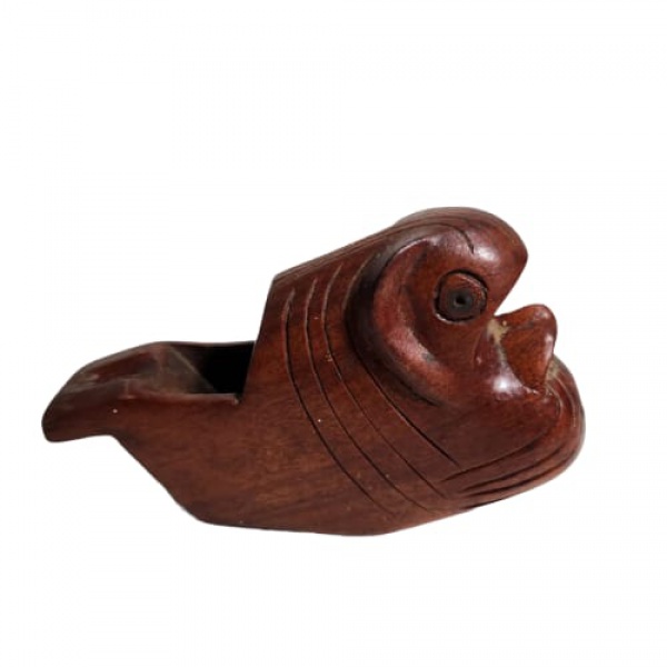 • Autor não identificado - Mini carranca em madeira no formato de um cinzeiro. Medindo 7,5 x 5 x 14 cm