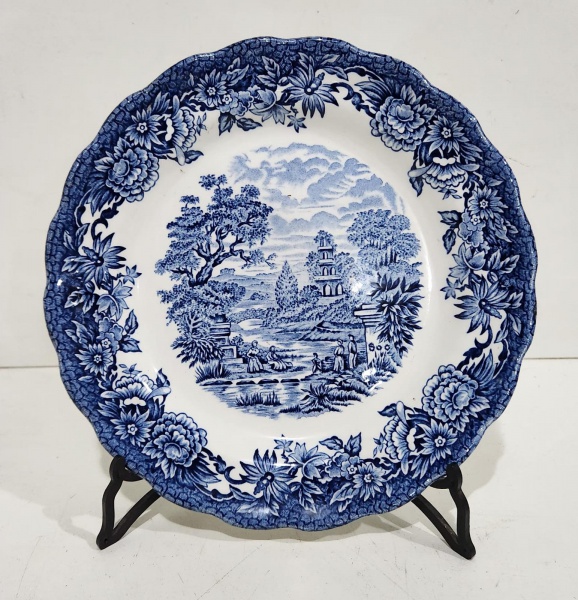 • ANTIGO PRATO DE COLEÇÃO EM FAIANÇA INGLESA RIDGWAY COM DECORAÇÃO DE CENA DE PAISAGEM. MEDINDO 19.5 CM