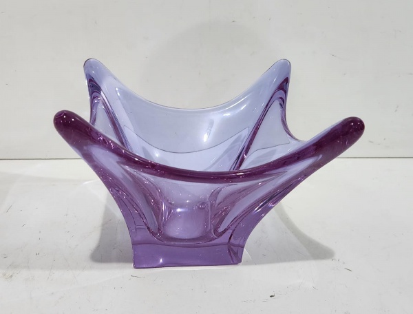 • JOSEF HOFMAN - MOSER Belíssimo Bowl centro de mesa em cristal europeu de origem Bohemia na tonalidade lilás na forma quadrada facetada, borda adulada e com pontas.  Medindo 14 x 19 x 19 cm