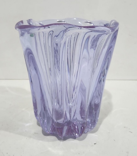 • ANTIGO VASO EMM CRISTAL NA TONALIDADE VIOLETA. MEDINDO  18.5 X 15 X 15 CM