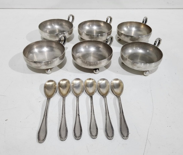 • EBERLE - LOTE COM 6 TAÇAS DE SOBREMESA COM SUAS COLHERES. PEÇAS MARCADAS. MEDINDO A TAÇA 4.5 X 8.5 X 11 CM E A COLHER 12.5 CM