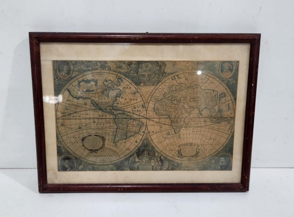 • ANTIGO  QUADRO MAPA MUNDI. MOLDURA COM RESQUÍCIOS DE CUPIM. MEDINDO 25 X 34.5 CM