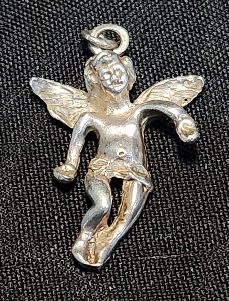 • PRATA DE LEI - PINGENTE EM PRATA RETRATAANDO UM QUERUBIM. PESANDO 4.6 GRAMAS E MEDINDO 3.5 X 2 CM